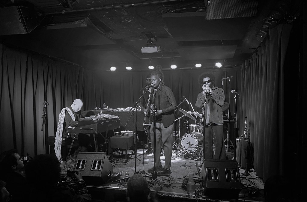 L to R: Keir Neuringer, Luke Stewart, Moor Mother, Aquiles Navarro with Tchester Holmes (drums)